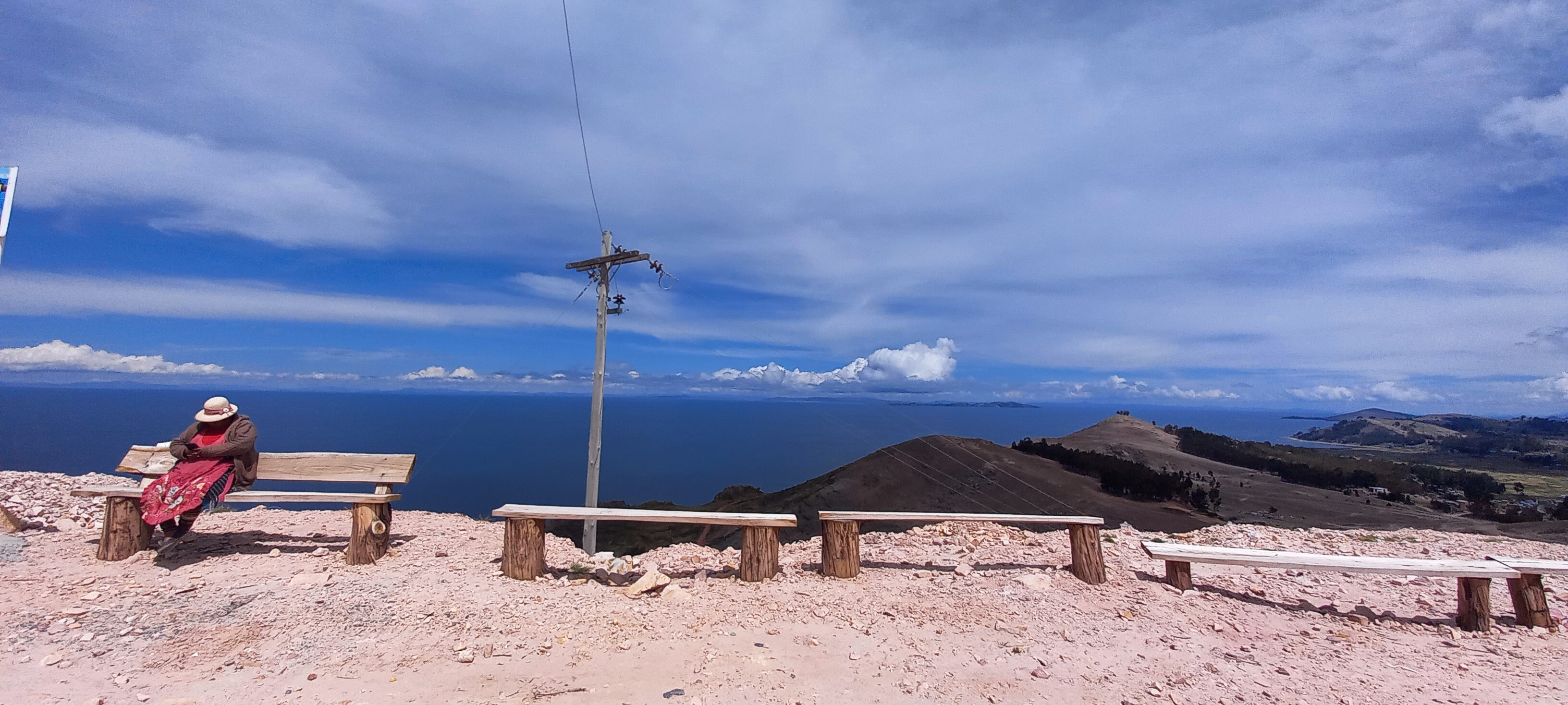 Wir waren gerade am Tee machen, da stand wieder plötzlich jemand da. Diesmal durchaus freundlicher und auch gesprächiger. Sie konnte spanisch, was uns half, das ein oder andere Missverständnisse aus der Welt zu schaffen. Sie kannte keine Plastikflaschen, unser Benzinkocher faszinierte sie und hätte diesen auch sehr gerne käuflich erworben. Was sie allerdings durchaus kannte, war die anderer Frau die wir versehentlich als Zwergenfee erkannt, erschreckt und überrascht hatten. Die Frauen des 3 km entfernten Dorfes kommen hier jeden Morgen im Eukalyptus Wald holz sammeln. Kann ich gut verstehen, denn hier in diesem Wäldchen ist es schön schattig, man hat einen spektakulären Ausblick auf den Lago Titicaca und man fühlt sich mit der Natur und dem Leben im Einklang.