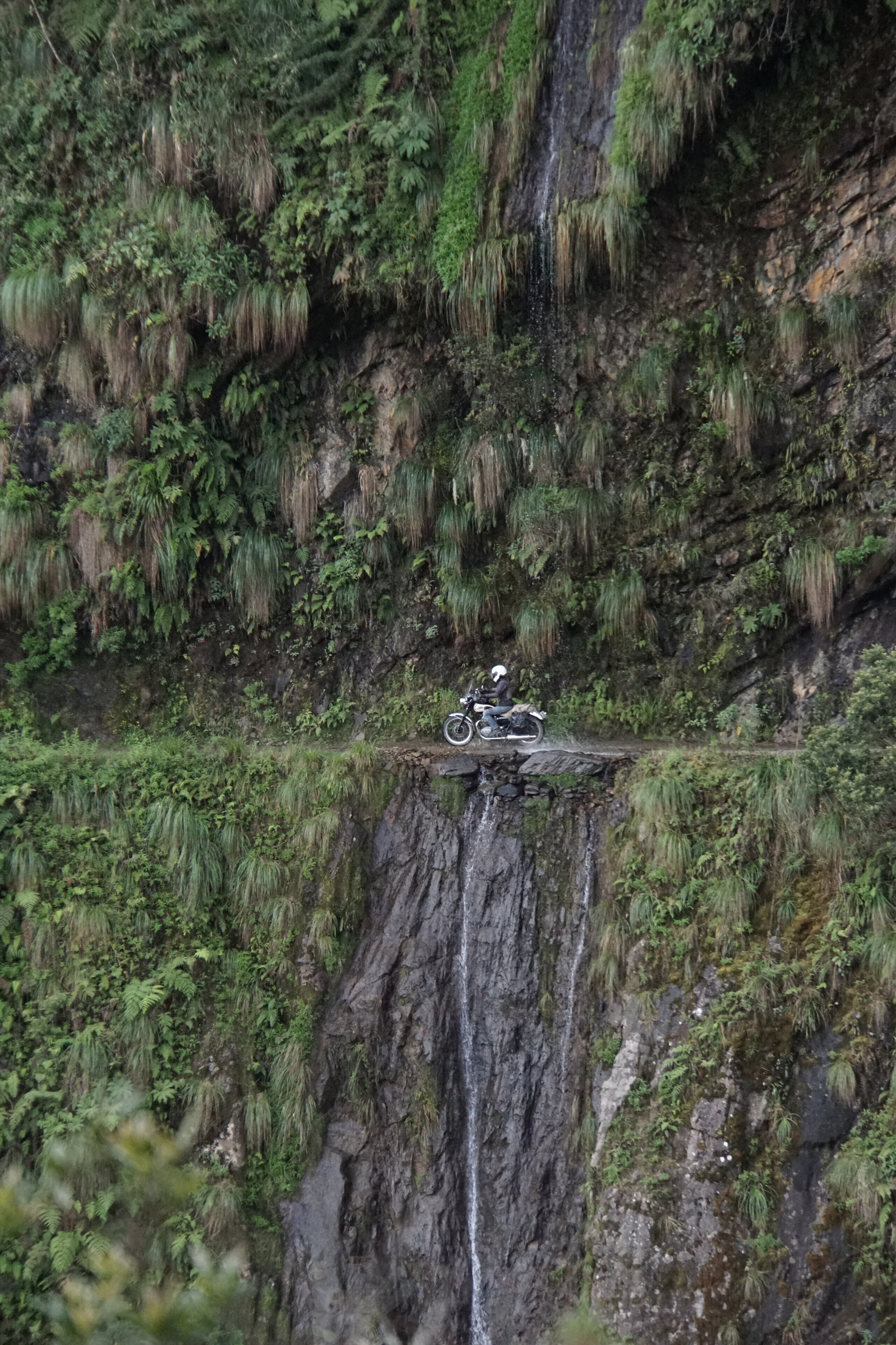 Nach und nach kommt ein Atemberaubendes Panorama zum Vorschein. Es dauert genau eine Kurve und die katapultiert dich direkt in die andere Welt. Wir tuckern zu viert durch mystisch herabfallende Wasserfälle, vorbei and überhängende mit wilder Vegetation verhängten Felsen, um Kurven, die für einen Moped und Berg Fan die reinste Freude, für einen Berufsfahrer mit mehr als 3,5T wahrscheinlich das tägliche Bauchweh sind.