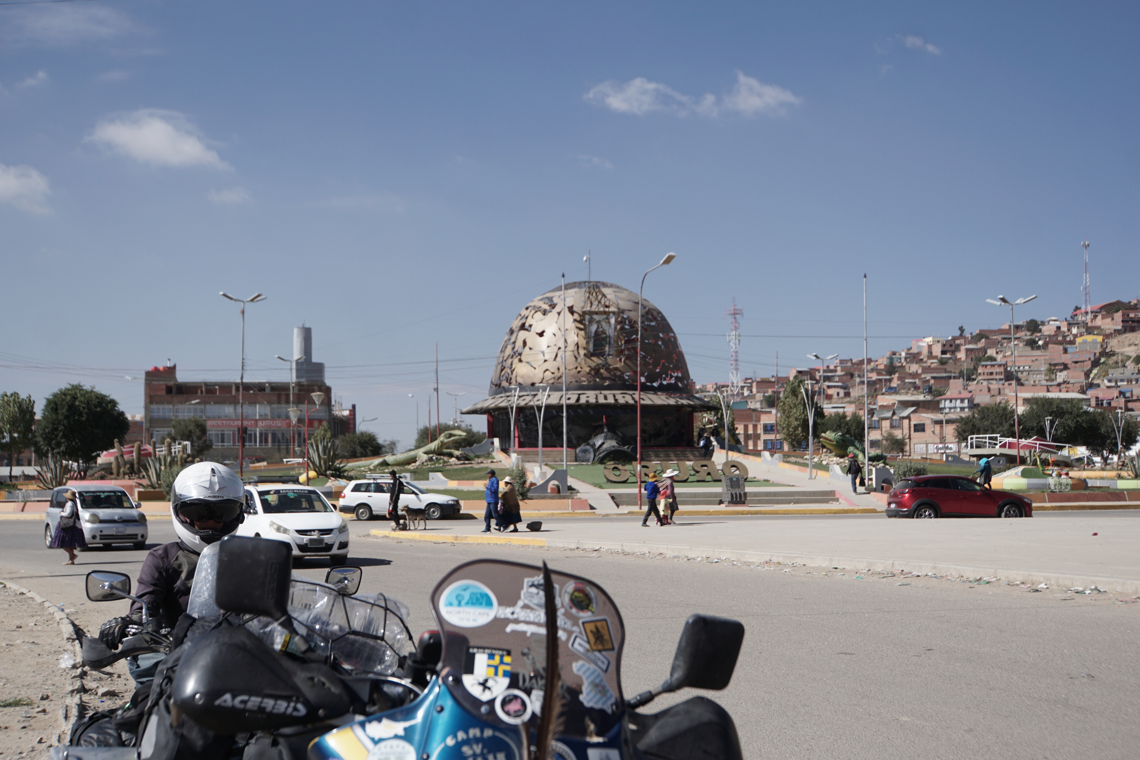 Oruro haben wir recht schnell hinter uns gebracht, denn wir wollen heute noch in La Paz ankommen. Als Domizil haben wir uns eine Moto Posada im südöstlichen Teil der Stadt rausgesucht. Die Fahrt bis dorthin könnte man als unspektakulären bezeichnen. Wenn man die grossen Verbindungsstrassen von Bolivien kennt, schockt einen so schnell nichts mehr. Von Schlaglöchern, Asphaltfragmenten und Bergen von Abfall, nahe den Ortschaften gibts sonst momentan nichts aufregendes. Das allerdings ändert sich schlagartig als wir uns La Paz nähern.